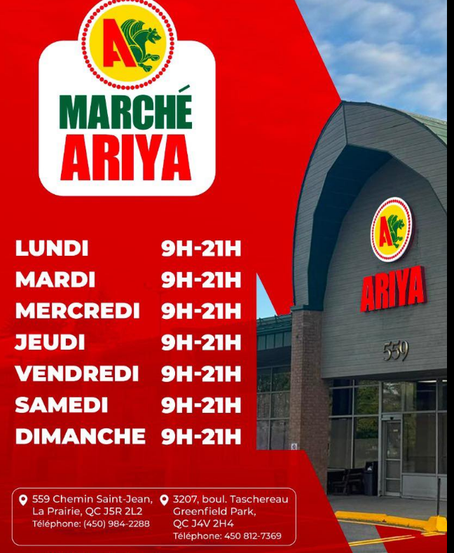 Marché Ariya est un supermarché haut de gamme qui propose une variété de produits frais, de cuisine afghane, de viandes halal et d’ingrédients internationaux.